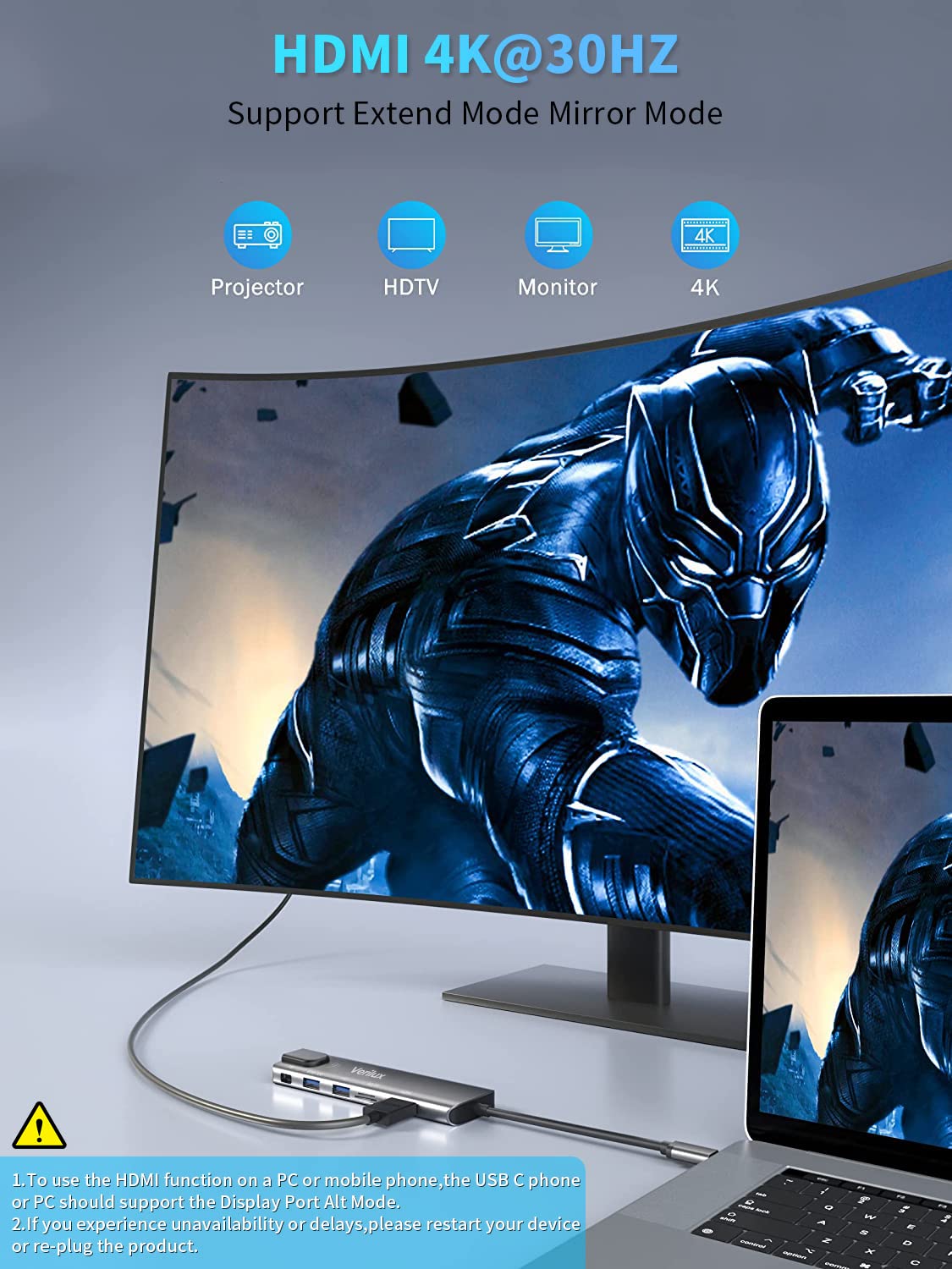 Verilux USB C Hub for Laptop with 7 in 1 Ports and 4K HDMI | 87W PD and Ethernet Adapter