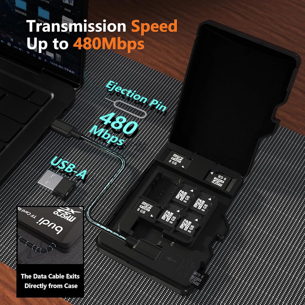 Verilux USB C Micro SD Memory Card Reader provides versatile data access for SD and TF cards, designed for users who need efficient connectivity across phones, laptops, and PCs. This card reader features a protective flip-up lid design that shields memory cards from dust and damage, maintaining secure storage and easy handling. The 2-in-1 USB A and C adapter ensures compatibility with both modern and traditional devices, allowing seamless file transfer in any environment. Its compact, portable storage case offers organized convenience for travelers and photographers alike. Ideal for anyone managing digital data on the go, the Verilux reader delivers reliable performance and practical utility backed by trusted brand expertise.