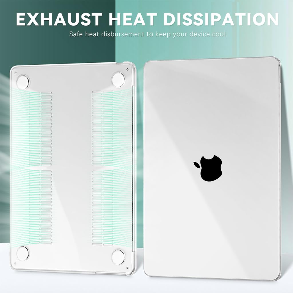 Verilux Laptop Cover for New MacBook Air 13 Inch M4 A3240, M3 A3113, and M2 A2681 provides a clear and durable hard shell that protects your device while maintaining its sleek Apple design. This 13.6-inch case fits precisely to MacBook Air models released in 2025, 2024, and 2022, ensuring a secure alignment and reliable coverage. Made from high-quality PC material, it resists scratches and daily wear while offering anti-slip stability through raised rubber feet. The two-piece snap-on structure makes installation effortless, and precision vents improve airflow to help prevent overheating. Designed by Verilux, this lightweight case delivers dependable all-around protection for users who value both functionality and style.