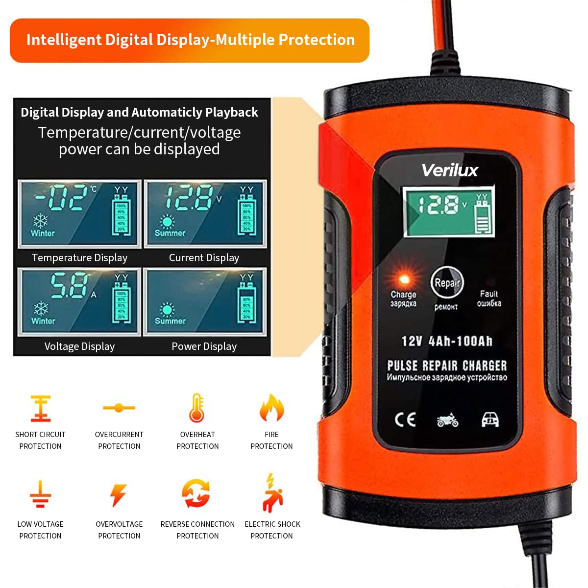 Verilux Battery Charger 5A 12V for Car and Motorcycle featuring LED Display | Pulse Repair