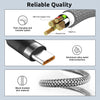 • ENHANCED DURABIILITY: This USB C cable is crafted with sturdy and well made nylon braided cable, wear resistance and anti-bends ensures longer service life. High performance zinc alloy connector covered with TPR coat has better durability and conductivity, standing with constantly use.