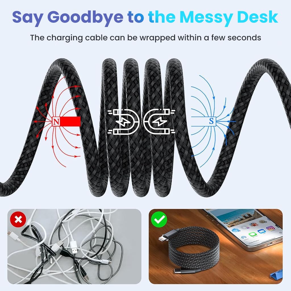Verilux Type C to Lightning Cable 3.3 ft with Magnetic Connector and Nylon Braid for iPhone 14