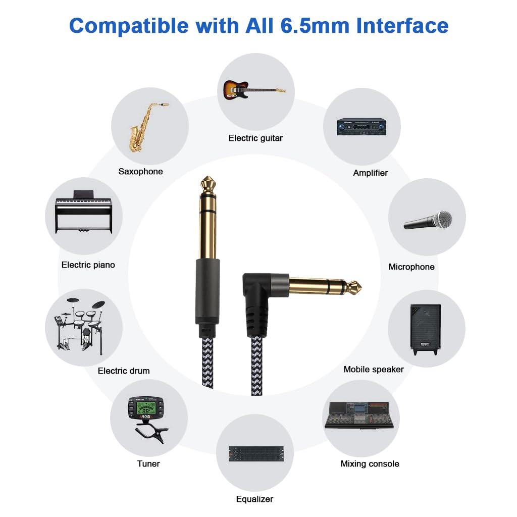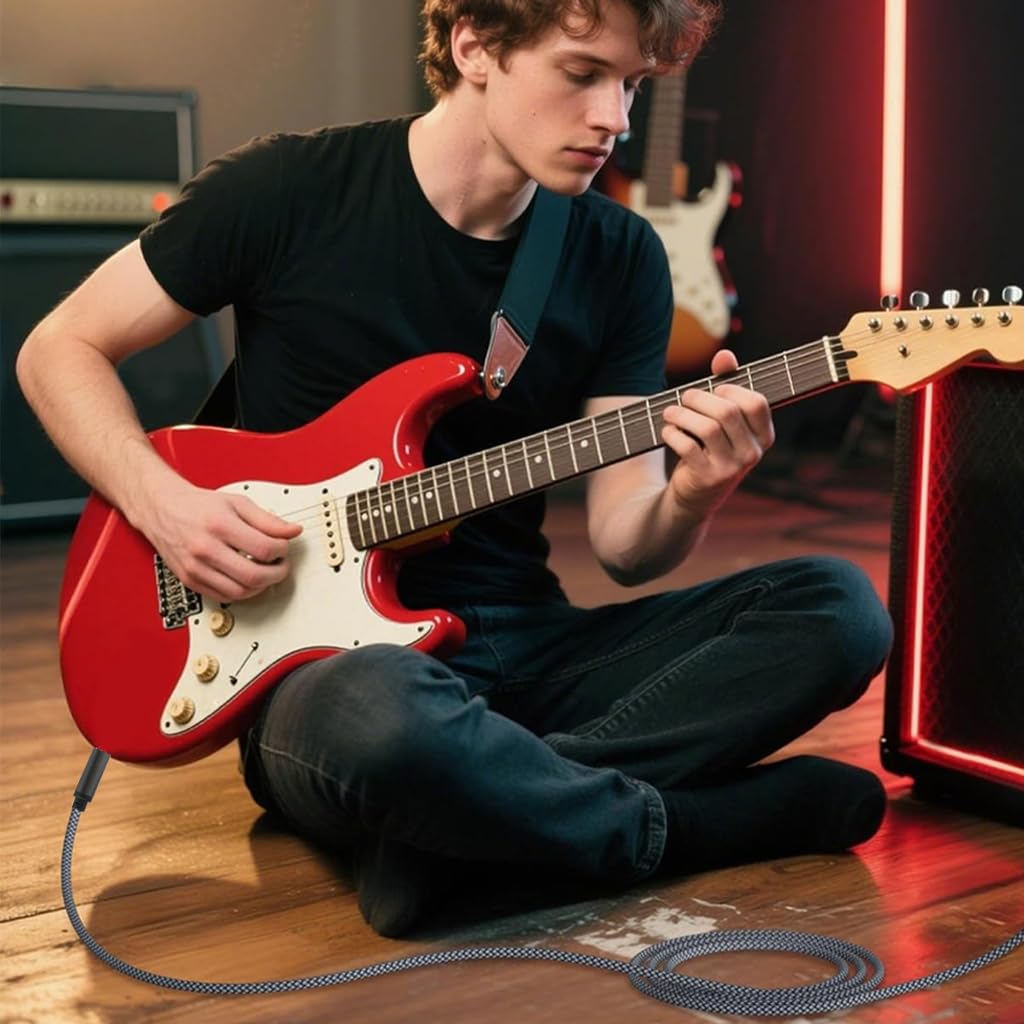Verilux Electric Guitar Cable 6.35mm 9.8FT/3M offers a reliable connection for musicians seeking stable and clear sound transmission between instruments and amplifiers. Built with durable nylon braiding and gold-plated connectors, this 6.35mm male-to-male aux cable delivers enhanced durability and resistance to interference. The use of premium copper conductors ensures crystal clear audio, while the right-angle and straight connectors provide flexibility in stage or studio setups. Designed as an unbalanced TRS cable, it supports guitars, basses, and keyboards with consistent performance. Ideal for both live performances and recording environments, this Verilux cable ensures dependable connectivity and professional audio quality for a wide range of devices.