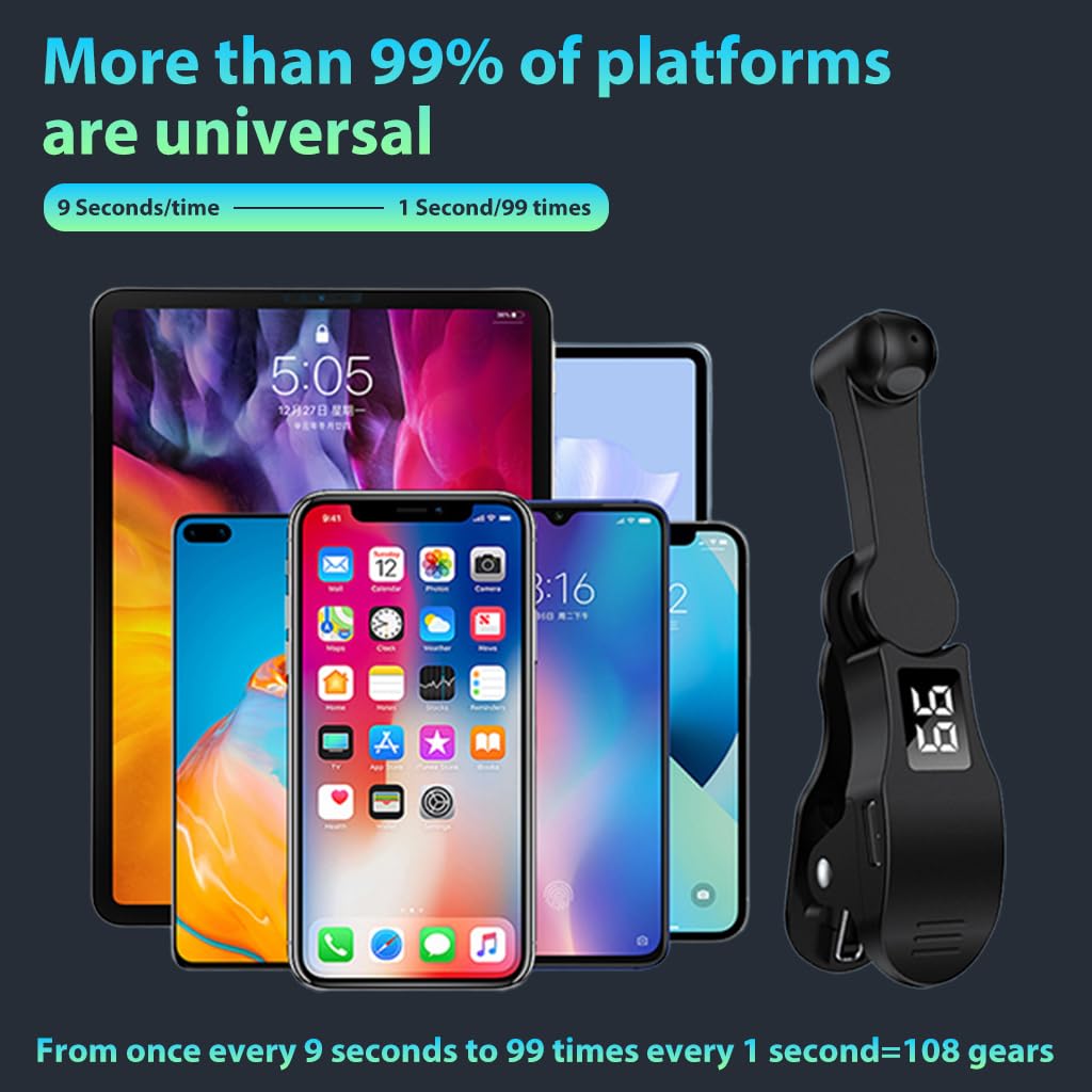 Verilux Auto Clicker for Smart Phone with LED Display provides a convenient solution for automatic screen tapping across mobile apps and games. Designed to simulate continuous and precise touches, it enables users to perform repetitive actions efficiently during gameplay, app testing, or debugging. The adjustable clicking frequency allows control over speed and rhythm for different tasks, while universal compatibility ensures smooth operation on most iPhone, iPad, Android, and other touchscreen devices. Featuring a USB rechargeable battery, the device supports extended usage without frequent recharging. With its clip-on and compact finger-bot structure, this Verilux tool enhances productivity by offering a reliable, hands-free experience for gaming, testing, and live broadcast activities.