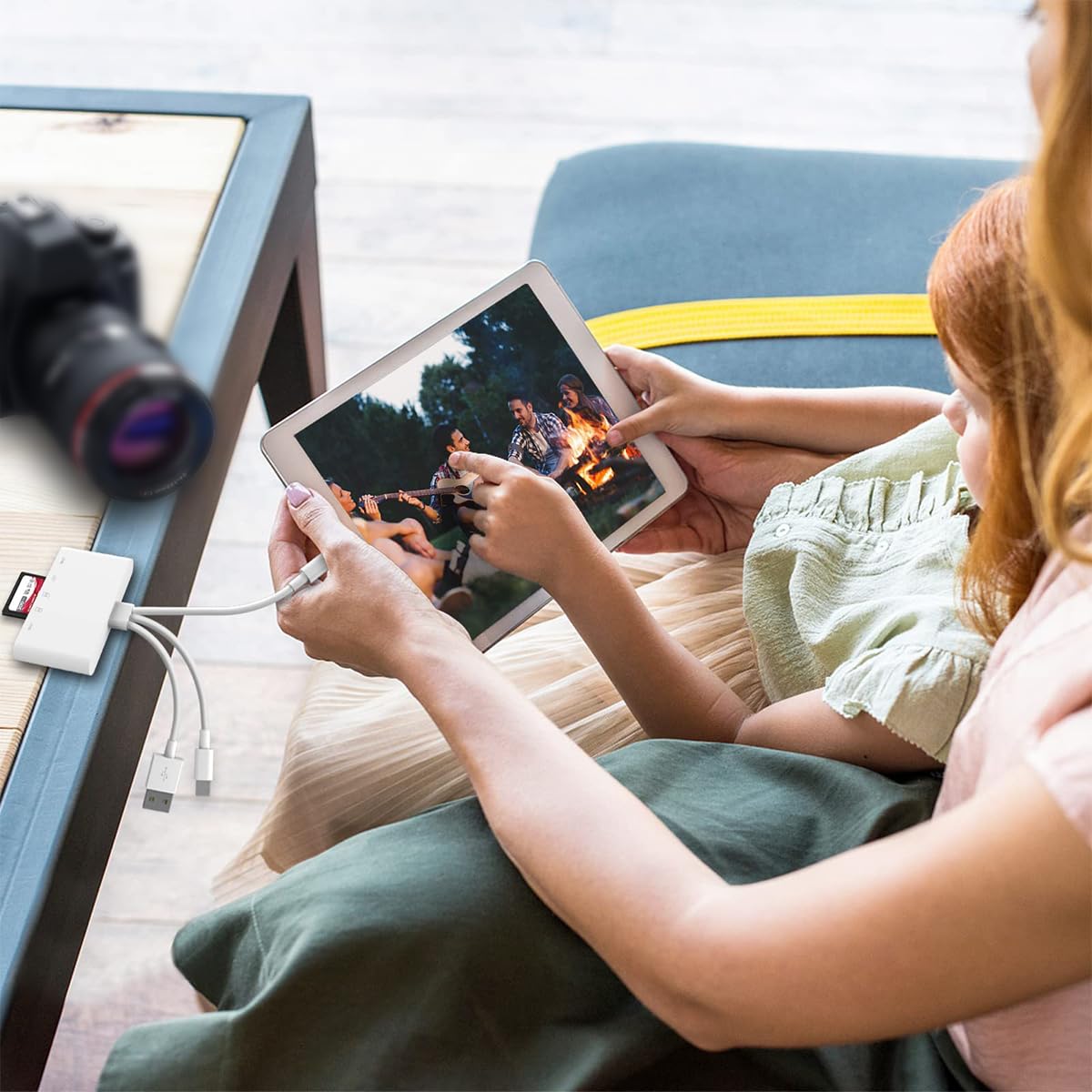 Verilux Card Reader for iPhone iPad and PC featuring 5 in 1 Design with 2 USB3.0 Ports | Supports Charging and Data Transfer