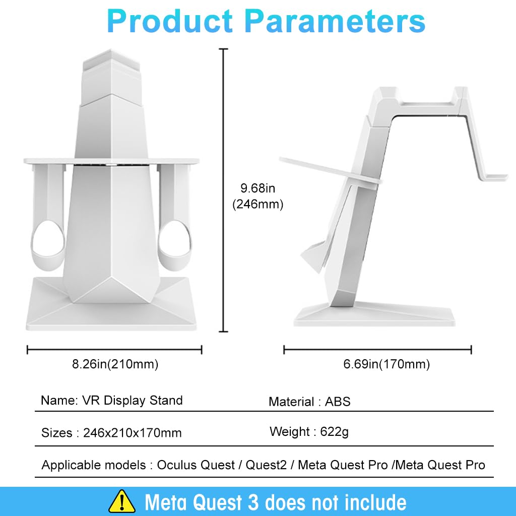 Verilux® Glasses Storage Stand Non-Slip Desktop Holder for VR Headset & Controller for Meta Quest 3 Accessories Pro Oculus Quest 2 Stand 3PCS is designed to provide stable and organized storage for your Meta Quest 3 or 3S devices. Made from premium ABS material, this stand offers excellent durability, resistance to wear, and eco-friendly performance for long-term reliability. Its portable and shockproof construction ensures safe handling and resistance to drops or dirt. The non-slip design keeps your VR headset and controllers securely in place, preventing accidental falls. This functional and durable stand from Verilux helps users maintain a tidy setup while protecting valuable VR equipment.