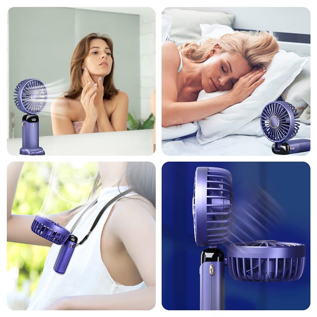 Verilux Hand Fan Mini Fan is a 5000mAh rechargeable portable fan designed to provide efficient cooling for home, office, or outdoor use. It features five adjustable speed settings that let users choose between soft to strong airflow, while the quiet brushless motor operates at under 30dB for a peaceful experience. With a long-lasting battery that supports 12–20 hours of continuous operation and convenient USB charging, this fan is ideal for travel and daily activities. The foldable 90° design, lightweight body, detachable base, and lanyard make it suitable as both a handheld and desk fan. Trusted for reliability and practicality, Verilux delivers comfort and refreshing airflow wherever needed.