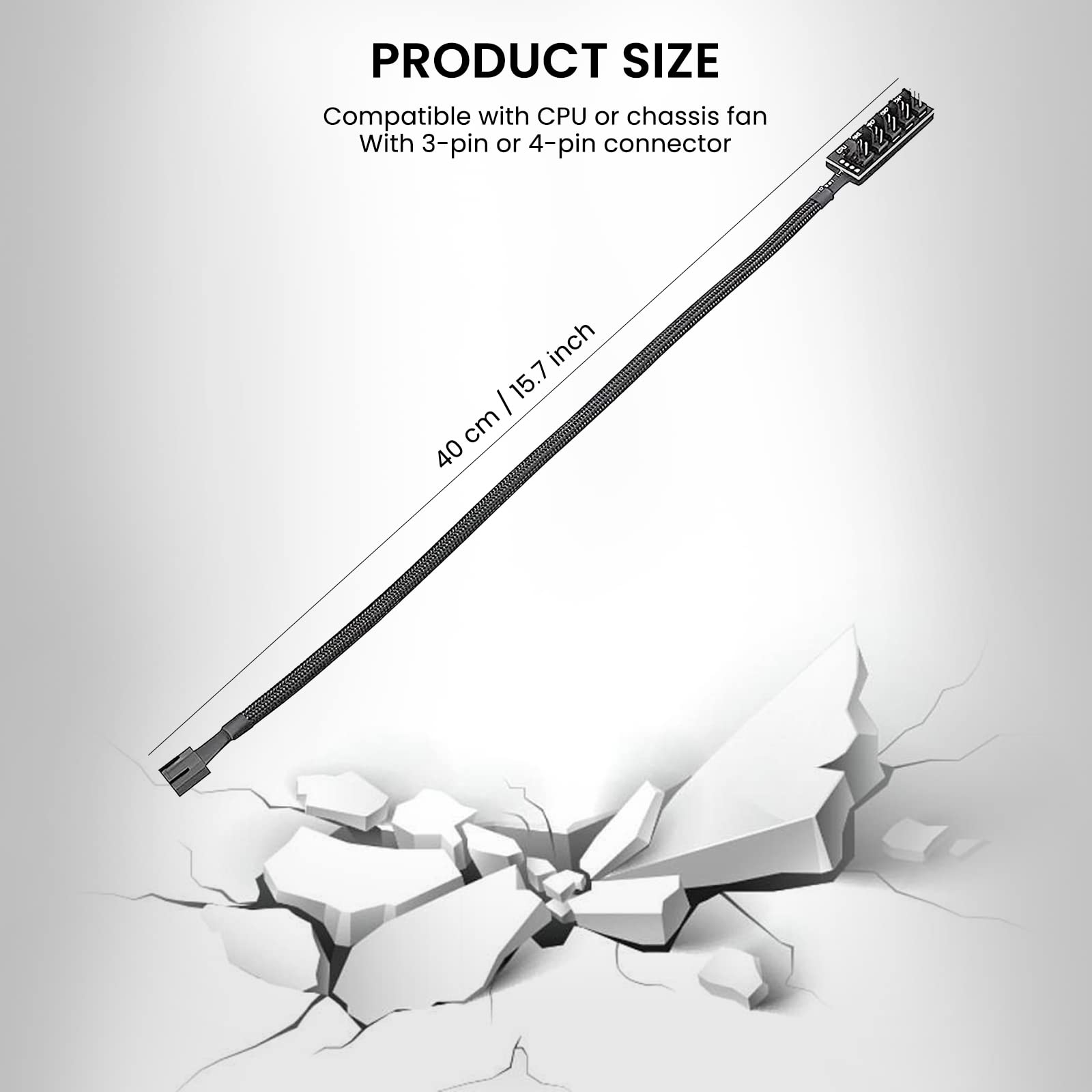 - The 15.7-inch cable length provides ample reach between motherboard and cooling fans, supporting 12V, 2A total output.