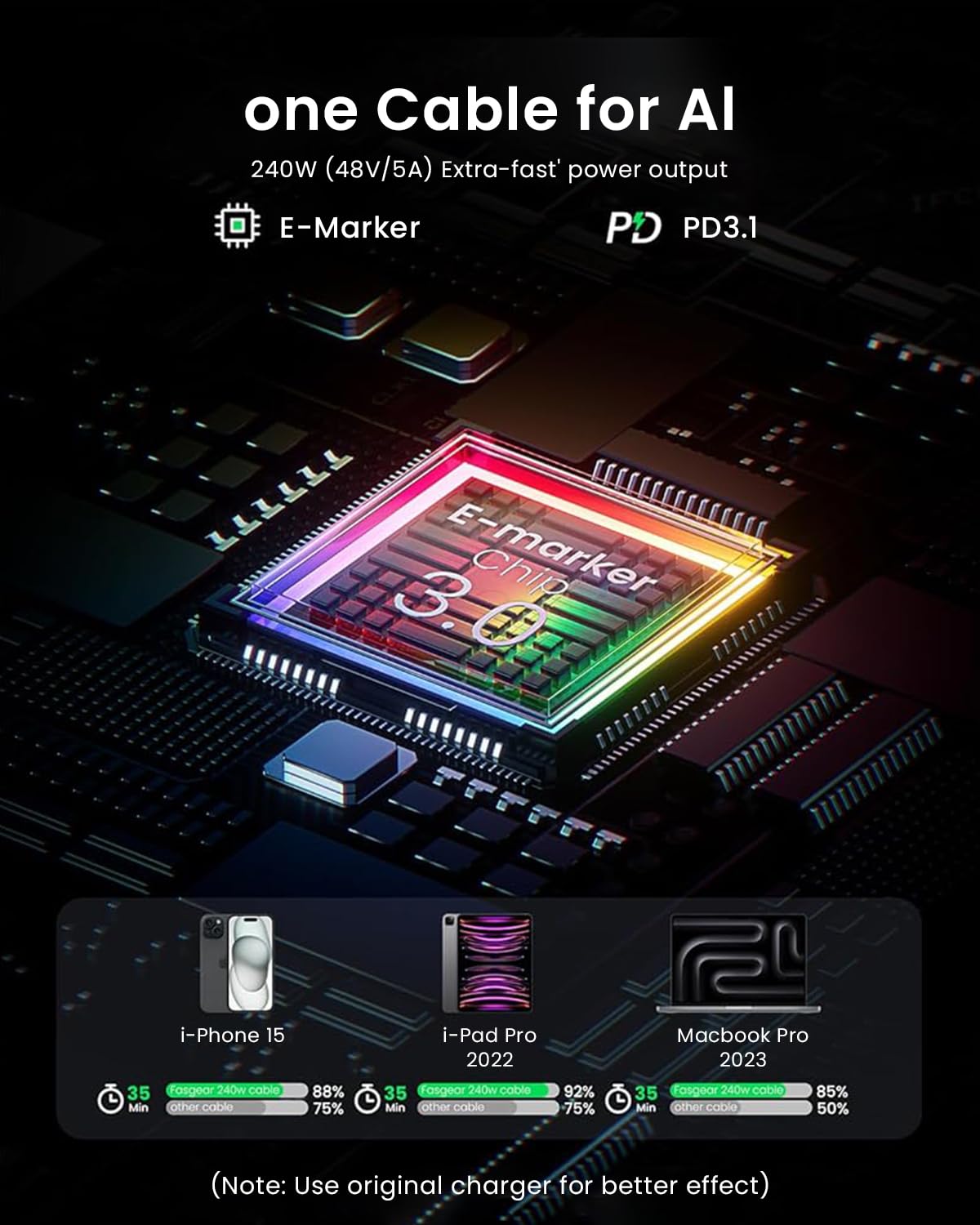 - Compatible with USB-C and Thunderbolt 3/4 devices, including iPhone, Galaxy, and MacBook models for versatile charging applications.