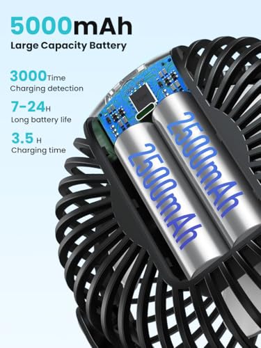 - LONG-LASTING BATTERY WITH LCD DISPLAY: Boasting an impressive 5000mAh built-in battery, the fan offers 7-10 hours of operation on a single full charge. The integrated LCD display keeps you informed of the battery status, ensuring you're always prepared for extended use without unexpected power interruptions.