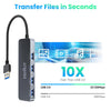 • Features a 4-in-1 design with USB-C and USB-A plugs and four USB 3.0 ports for expanded connectivity.