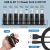 Verilux USB to DC 5V Power Cord 3.3ft for Universal Charging with 8 Interchangeable Adapters