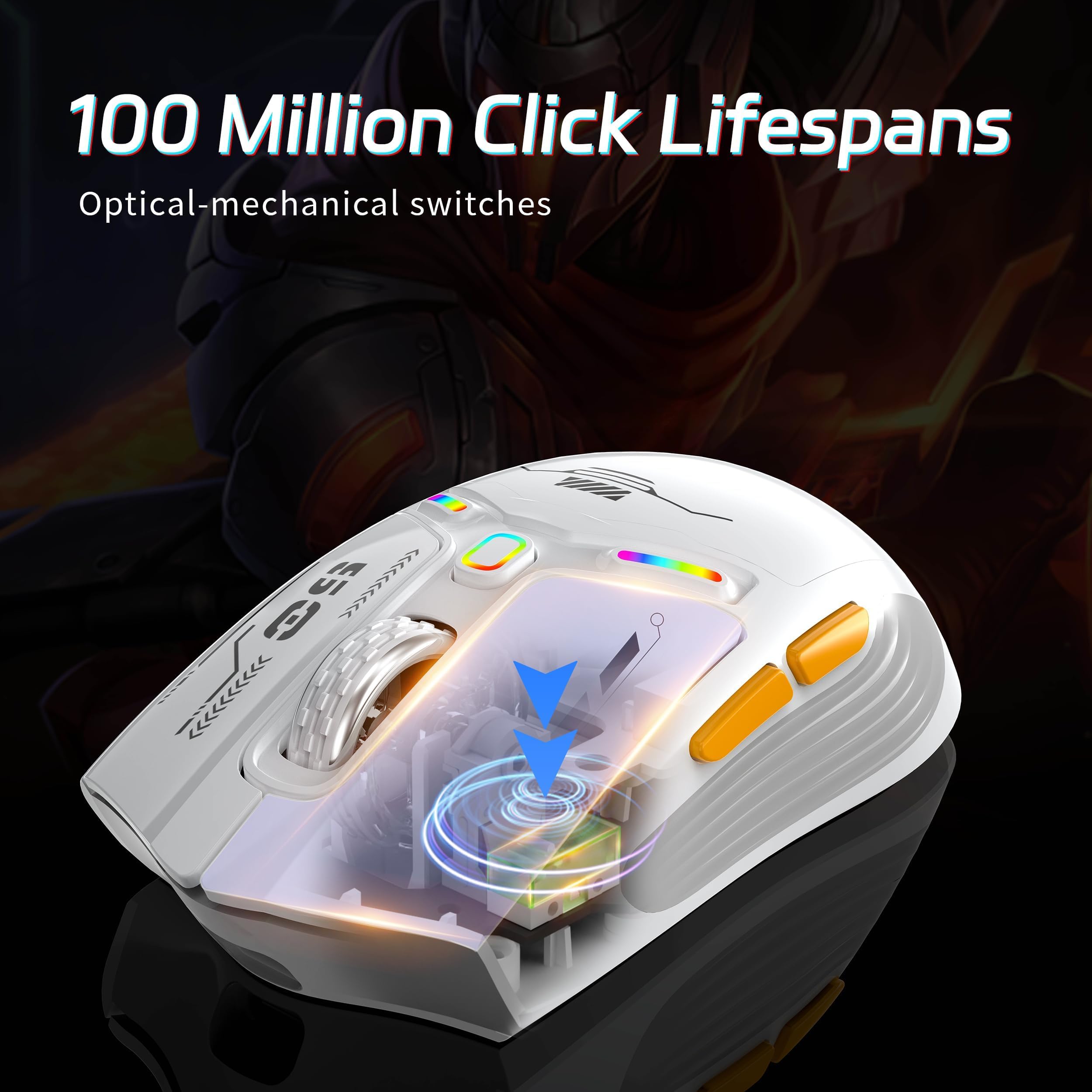 Verilux Wireless Gaming Mouse Pixart 3311 Sensor 12000 DPI delivers precise and consistent tracking performance designed for competitive gaming. With its advanced PWA3311 sensor offering up to 12,000 DPI and 300 IPS precision, players experience seamless control in fast-paced gameplay. The mouse supports versatile high-speed connectivity options, including 1000Hz wired and 500Hz wireless polling rates via 2.4GHz or Bluetooth. Built with Huano Green Transparent Shell White Dot Switches rated for 100 million clicks, it ensures long-lasting durability and responsive clicks. Its magnetically swappable honeycomb shell allows comfort customization, while the 600mAh battery provides up to 100 hours of use. Ideal for gamers seeking precision, comfort, and reliable performance from Verilux.