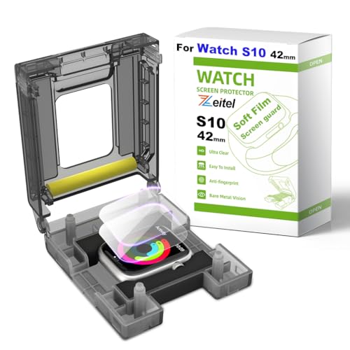 Zeitel® Screen Protector for A pple Watch S10 42mm HD Soft Protective Silicone Film Scratch Protection Screen Protector with Auto-Alignment Applicator Tool Kit, 2 Sheet Film Included
