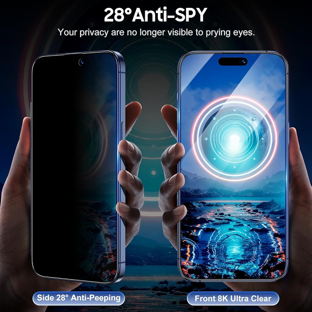 • 9H Hardness &Durability】 This iPhone 15 Pro Max Privacy screen glass made of 9H military blast-resistant glass that has been dropped thousands of times and still remains intact on your phone's screen for maximum protection.