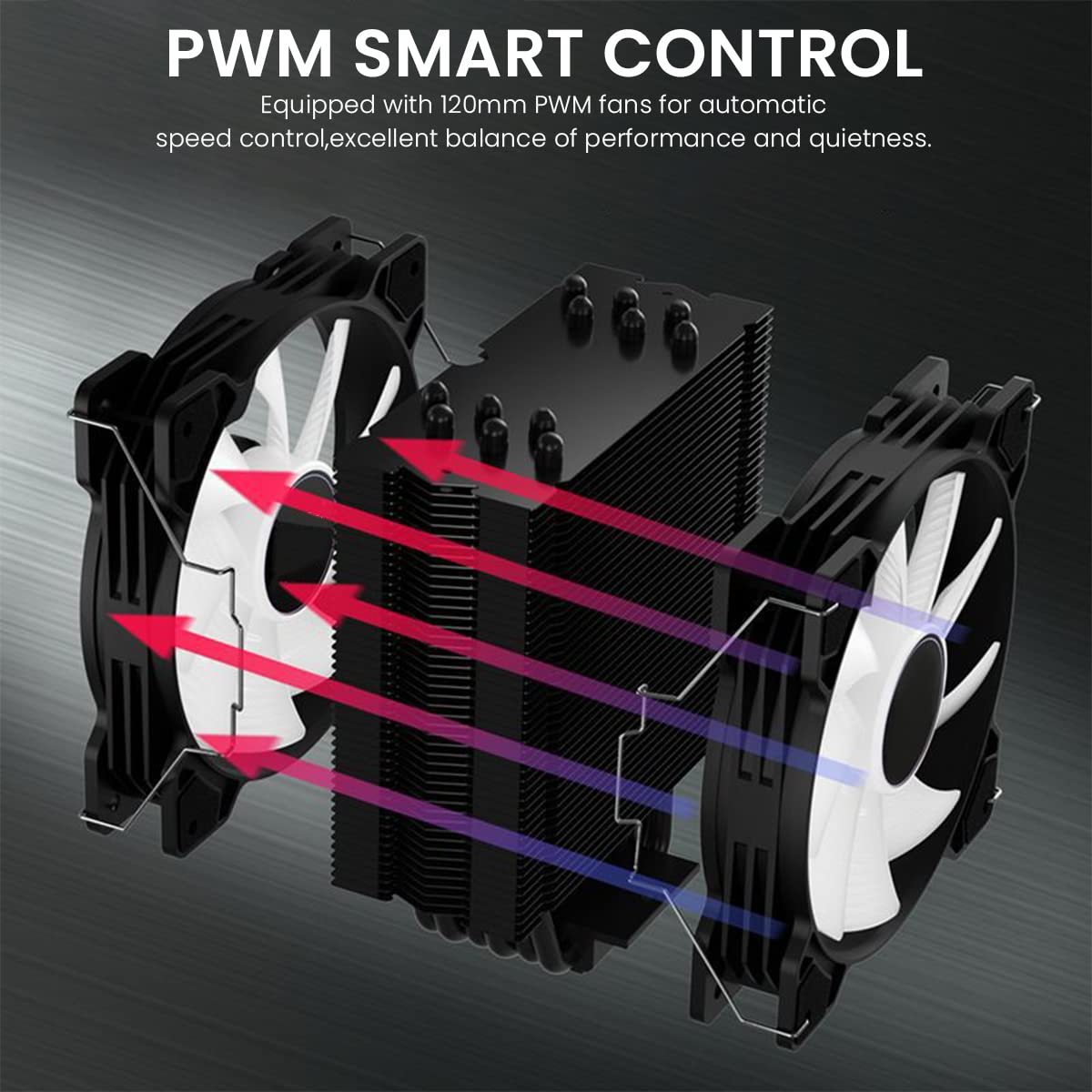 • Dual 120mm PWM fans provide balanced and adjustable airflow for efficient cooling performance.