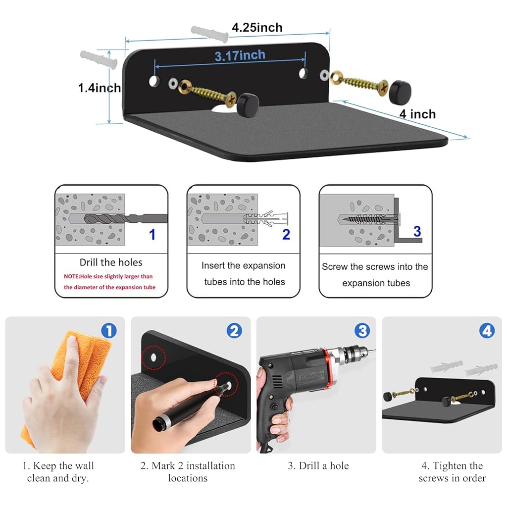• ANTI-SLIP PAD FOR SECURE HOLD: Equipped with an anti-slip pad, this wall rack ensures your BT speaker or essentials remain in place without the risk of sliding or falling.