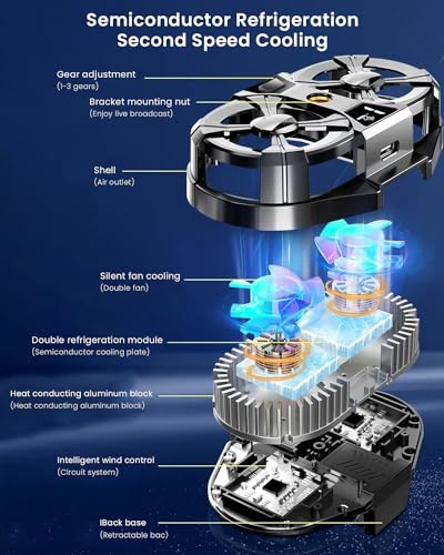 • INNOVTIVE DUAL TURBO FAN WITH 3 MODES: This upgrade cooling fan for phone features innovative dual turbo technology that enhances airflow, enabling rapid heat dissipation to keep your device running smoothly even during intensive use. The three adjustable modeslow, medium, and highallow you to customize the cooling effect based on your phone's needs or the gaming intensity. The 3-speed settings allow you to choose between a stronger cooling mode and a quieter, more energy-efficient.