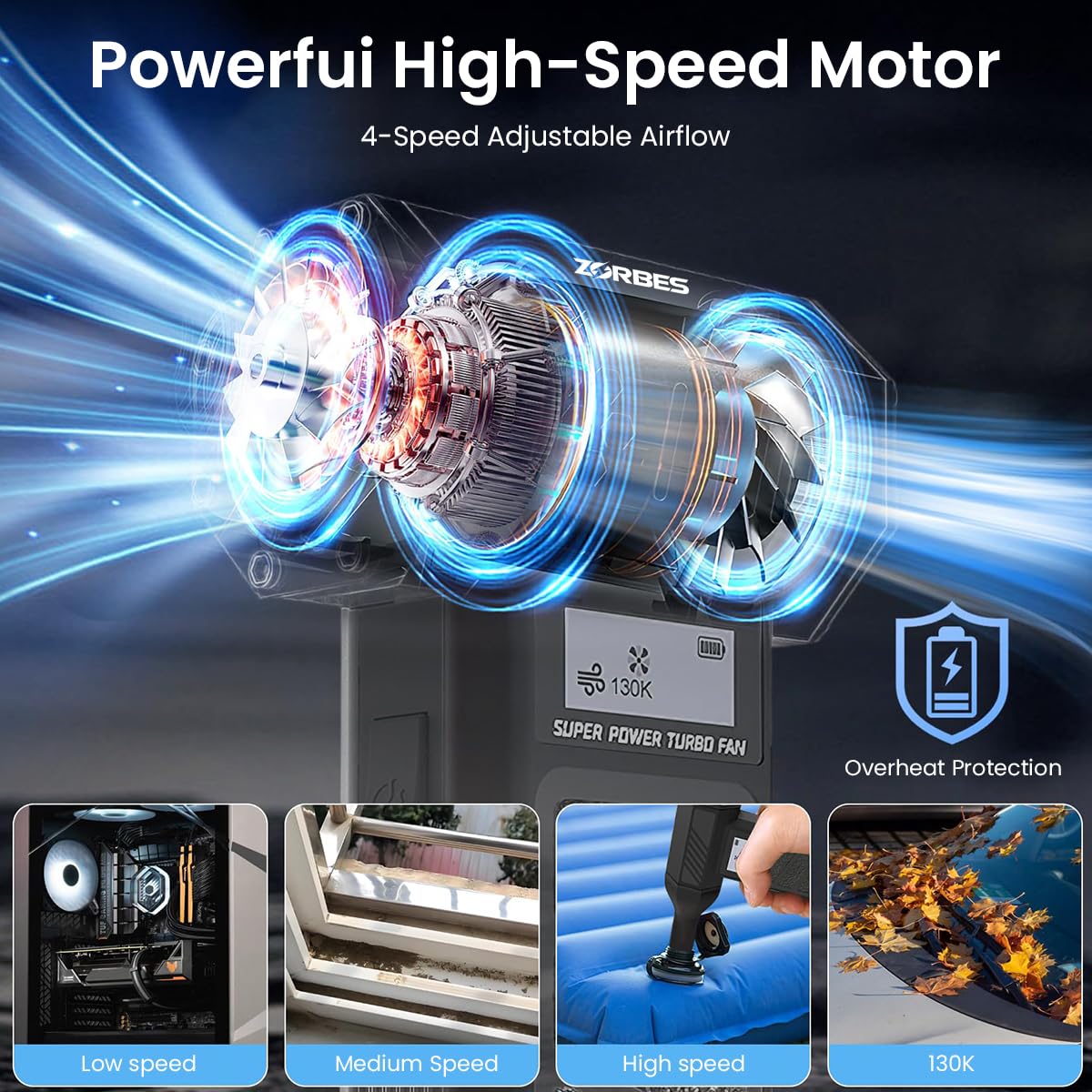 - PORTABLE AND DURABLE: The turbo blower is equipped with an extra-large 5, 000mAh battery with a long battery life to ensure longevity during travel, outdoor adventures, or everyday use, turbo jet blower USB-C charging is convenient to take with you anywhere.