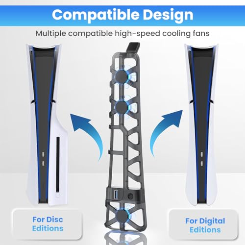 • PREMIUM AND DURABLE CONSTRUCTION: Crafted from high-quality materials, the PS5 cooling fan boasts a robust and durable design, ensuring it can withstand the rigors of daily use. Its premium construction guarantees longevity, making it a reliable accessory for your gaming setup.