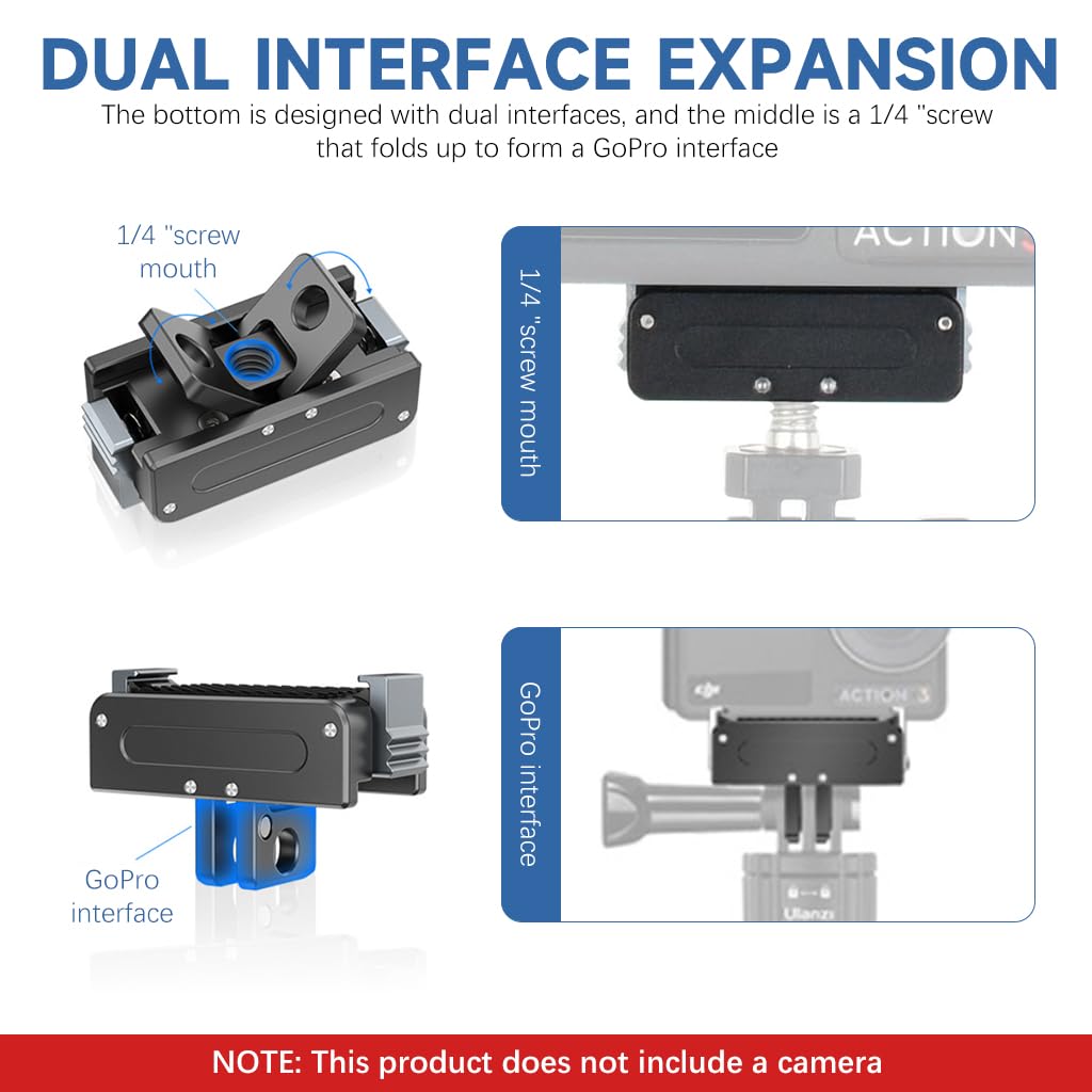 - UNIVERSAL COMPATIBILITY: This adapter mount is specifically designed for Osmo Action 4/3 cameras and supports Go-Pro style mounting systems. Its universal design ensures a seamless fit with tripods, helmet mounts, and other accessories, making it the ideal choice for content creators seeking versatility and ease of use across various devices.