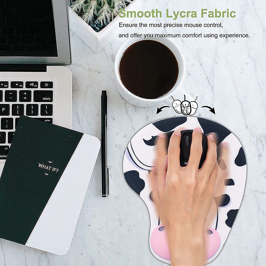 ZORBES® Mouse Pad with Wrist Rest Non-Slip Backing Cow Anime Cute Gel Easy-Typing Pain Relief for Gaming Office Computer Laptop 3PCS