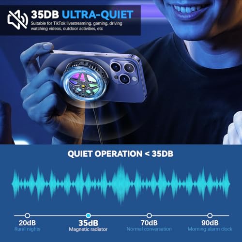 • PLUG-AND-GO DESIGN: Designed to fit most smartphones, this cooling accessory features universal compatibility. Plug-and-go simplicity means it requires no complicated setupjust attach, connect, and get instant cooling. Effortless installation paired with broad device support promises a seamless experience for any user, enhancing comfort during even the longest sessions. For the best results, use it with a 30W or more adapter and in an environment below 25 degrees.