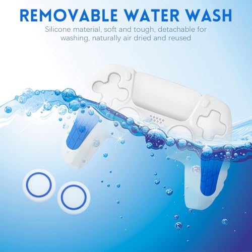 ZORBES® PS5 Controller Case Silicone Protective Cover for Dual Sense with 2 Thumb Grip Caps Touchpad Sticker White Blue 3PCS